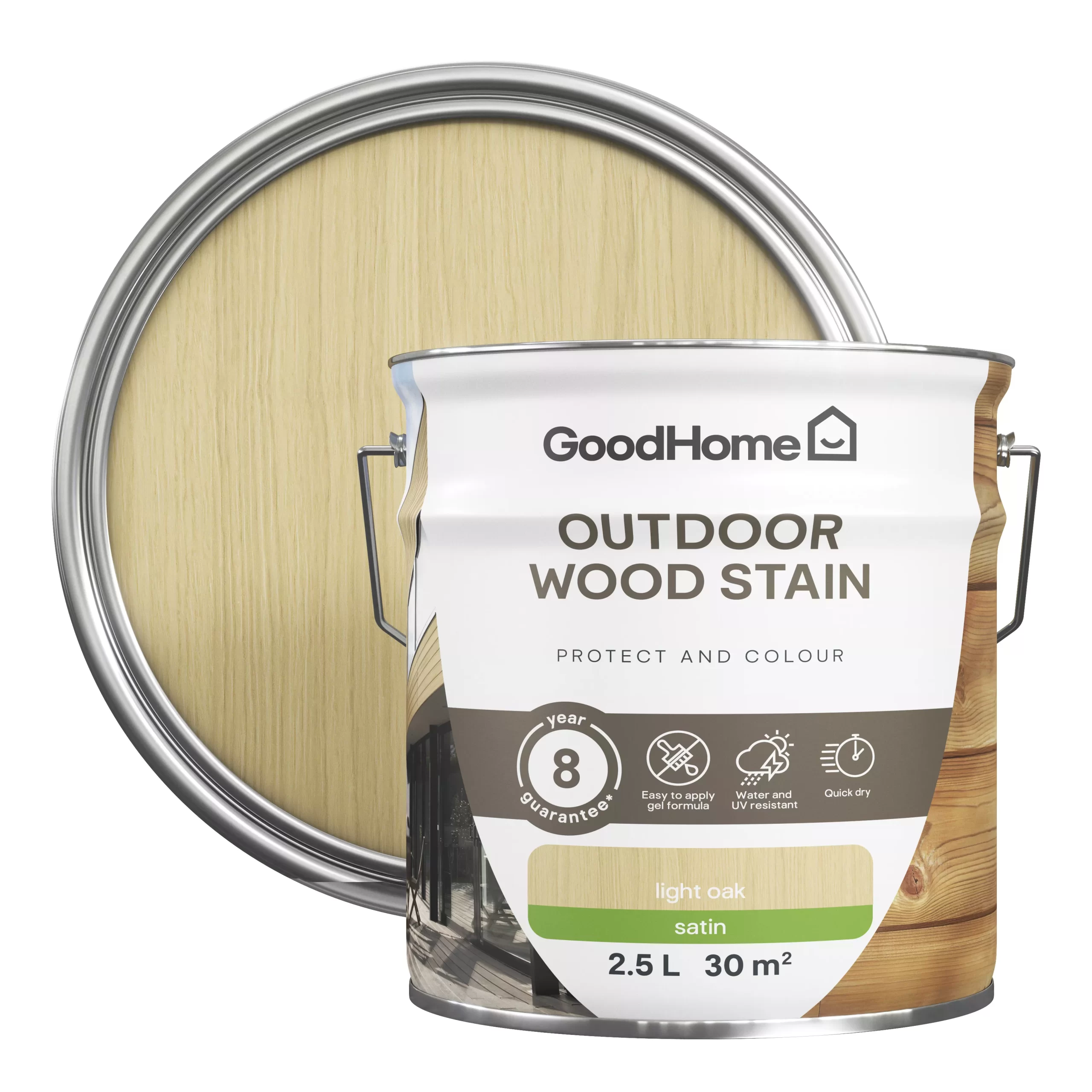 GoodHome Outdoor Wood Stain will protect and colour your new and old outdoor wood, with an 8 year guarantee.