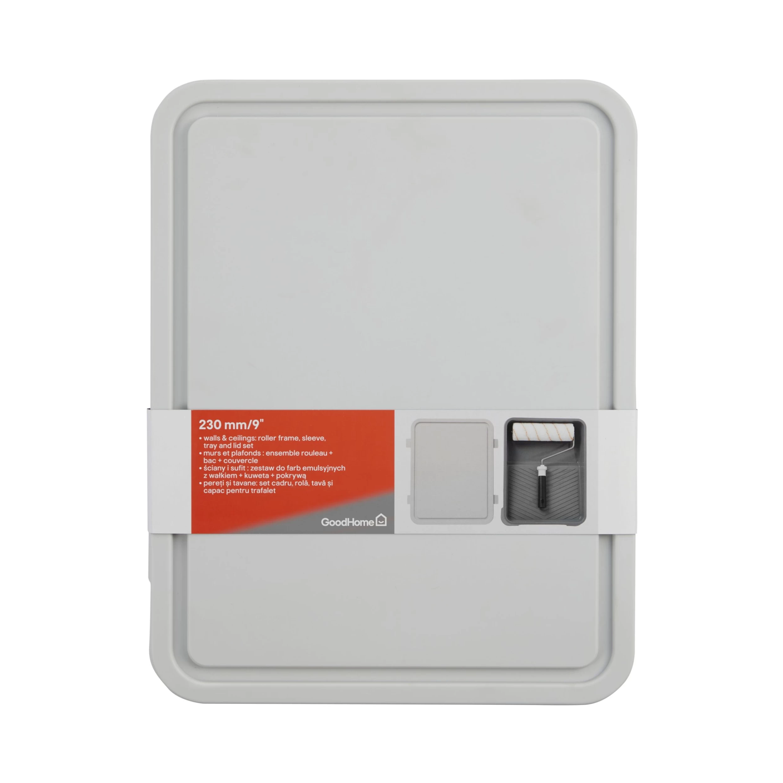 Paint walls, ceilings and wood easily with our 9″ (230mm) GoodHome roller, tray and lid set. The roller tray and lid allows you to pause whilst decorating for up to 7 days without the paint drying. The roller sleeve provides a good finish, paint hold and release capacity, and is an excellent all rounder. It has a large 45mm core diameter for great paint holding capacity for fast work.