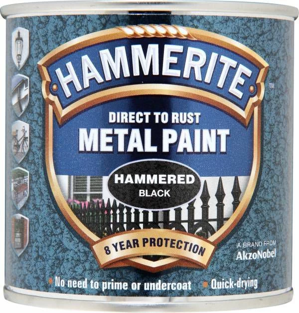 A reliable Hammerite interior and exterior metal paint that is a great choice to give your home a refresh. Black is a versatile colour that will suit any interior and exterior design. The paint is best used on iron. This 250ml size will cover up to 5 mΒ² on average. For the best outcome, apply with a brush or roller.