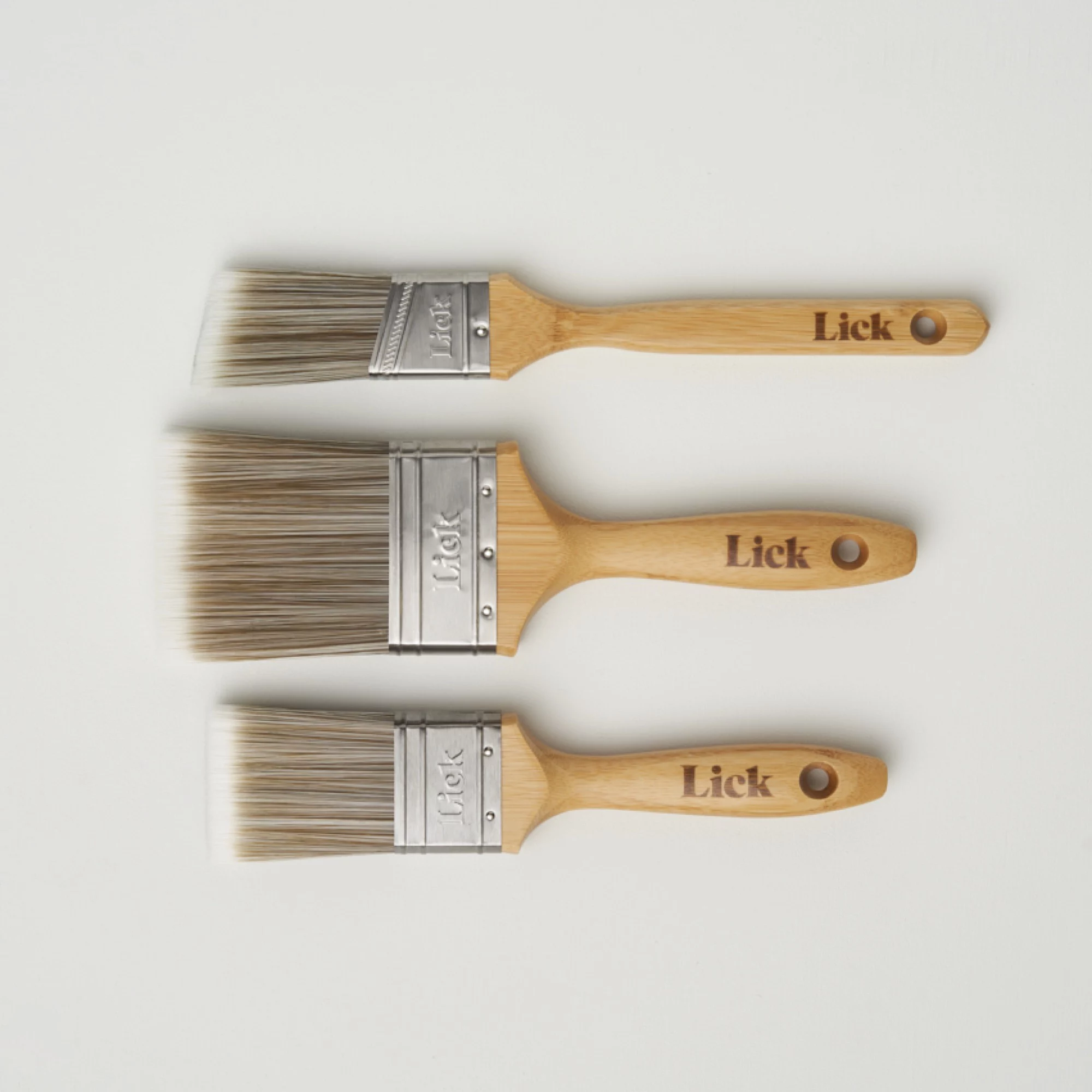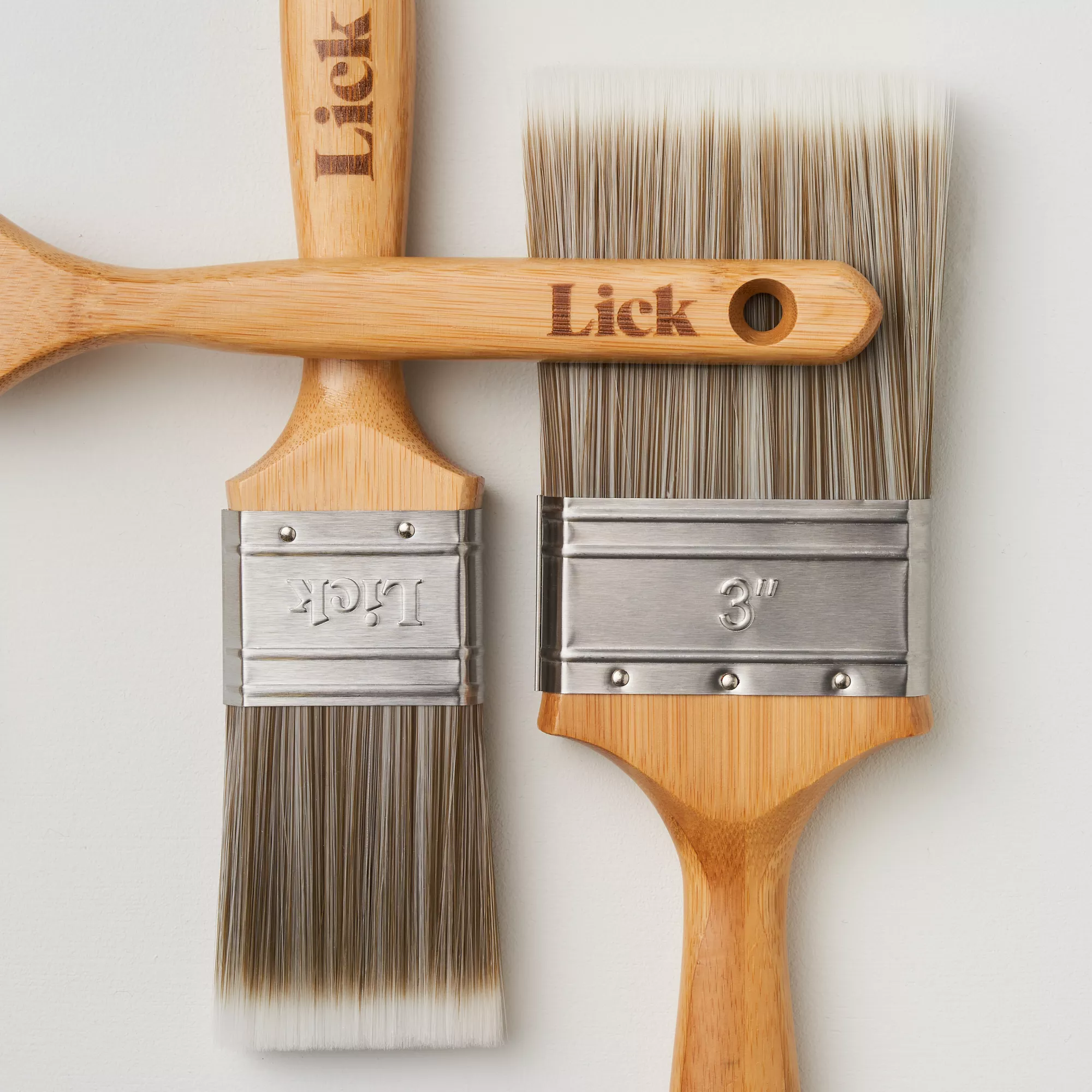 Lick has everything you need to complete your decorating project with confidence. This is the perfect brush set, with three different brushes designed to meet all your painting needs, from cutting-in to woodwork. Suitable for use with all paint type, these high-quality brushes are designed with ergonomic FSC®-certified bamboo handles for a firm grip, durable bristle-mix and a recycled steel ferrule that won’t rust. LickTools is a certified B Corp and Carbon Neutral Company, providing eco-friendly tools that will stand the test of time, uncompromising on sustainability and quality. Choose LickTools.