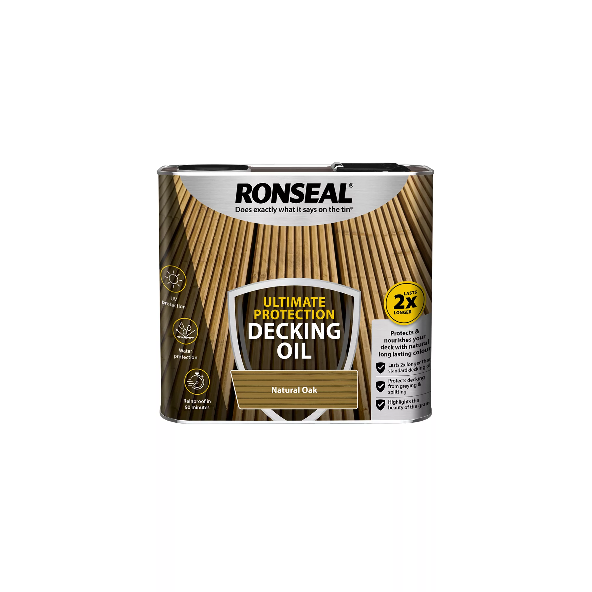Revitalise and nourish your decking with this decking oil from Ronseal Simply apply using a brush and leave for 90 minutes to dry. Covers up to 8 mΒ² per litre on average.