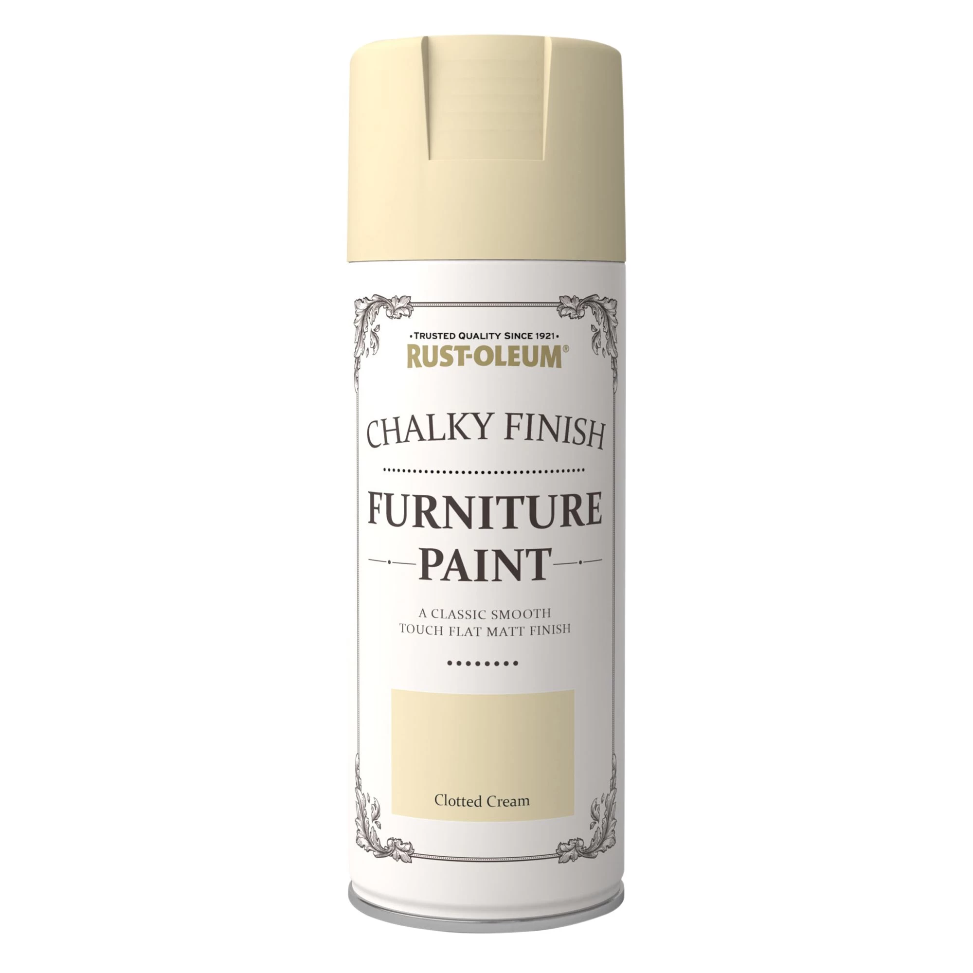 With a quick coat of Rust-Oleum chalky finish furniture spray paint, you can now achieve a flat matt finish with a classic, smooth touch. With the ease of application, it brings new life to tired and worn-out pieces of furniture. Finish with a layer of Rust-Oleum furniture finishing wax or Rust-Oleum furniture lacquer for protection