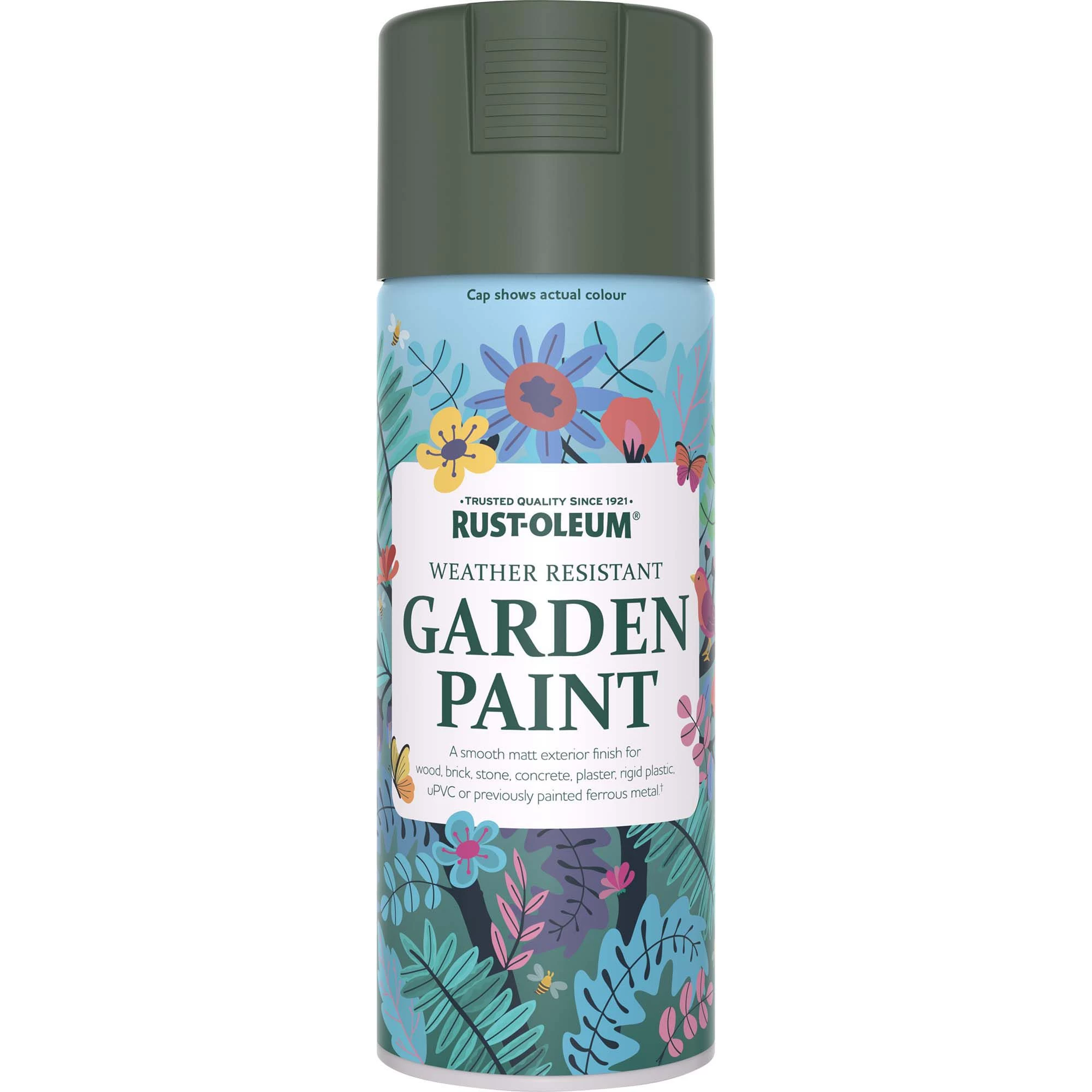 This matt paint from the Rust-Oleum Garden Paint range is the perfect choice to renovate your garden. Made to provide a rich, durable finish on multi-surface, you can be sure that this paint will look brilliant for longer. All Green is a wonderful shade of green that will add a splash of colour to your design. The paint is best used as a topcoat on wood. Designed to provide a long-lasting matt finish, this paint achieves a beautiful look, without compromising on quality. This 400ml spray can contains enough paint to cover up to 2 mΒ² on average. For maximum results, apply to a dry, dust-free, and grease-free surface with a sprayer. Rust-Oleum Garden Paint ensures a rich depth of colour after just 2 coats and it can be recoated after 48 hours. Made with protective technology, this paint is resistant to water and mould, allowing you to free yourself from the worries of everyday damage to your new surfaces.