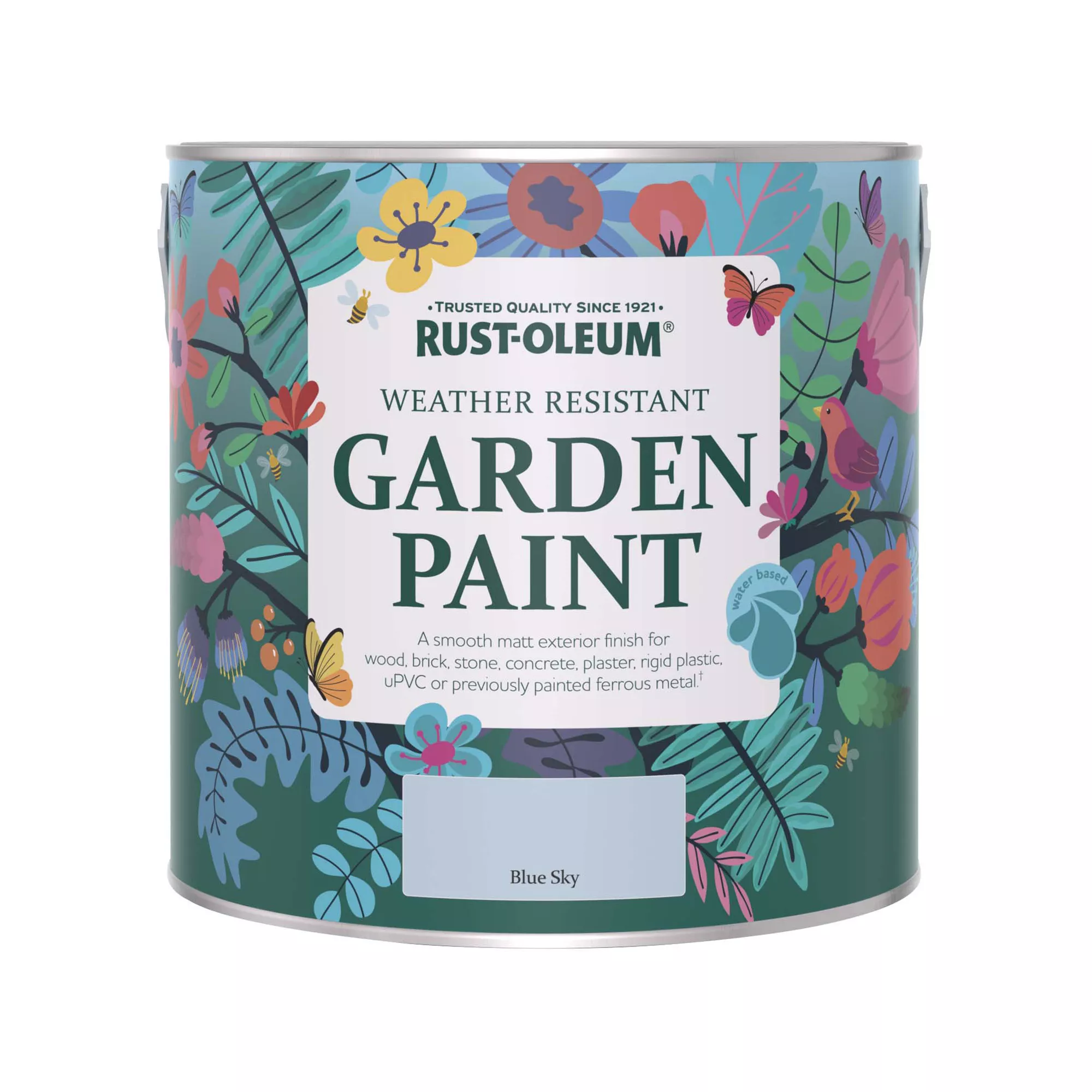 Refresh your garden with the Garden Paint exterior matt paint from Rust-Oleum. It’s suitable for use on multi-surface, so you can rely on it for any project. Blue Sky is a wonderful shade of blue that will add a touch of character to your scheme. The paint is best used as a topcoat on wood. After application, this paint will accomplish a flawlessly matt surface that will look brand new for a long time. This 2.5L size will cover up to 35 m² on average. For the best outcome, apply to a dry, dust-free, and grease-free surface with a brush or roller. This paint needs 2 coats to look its best, but its quick drying formula makes up for lost time, as you can recoat after just 2 hours. Resistant to mould and water, it’s suitable for use in your outdoor space. Furthermore, our paint is water-based, so it’s safe for you and your home.