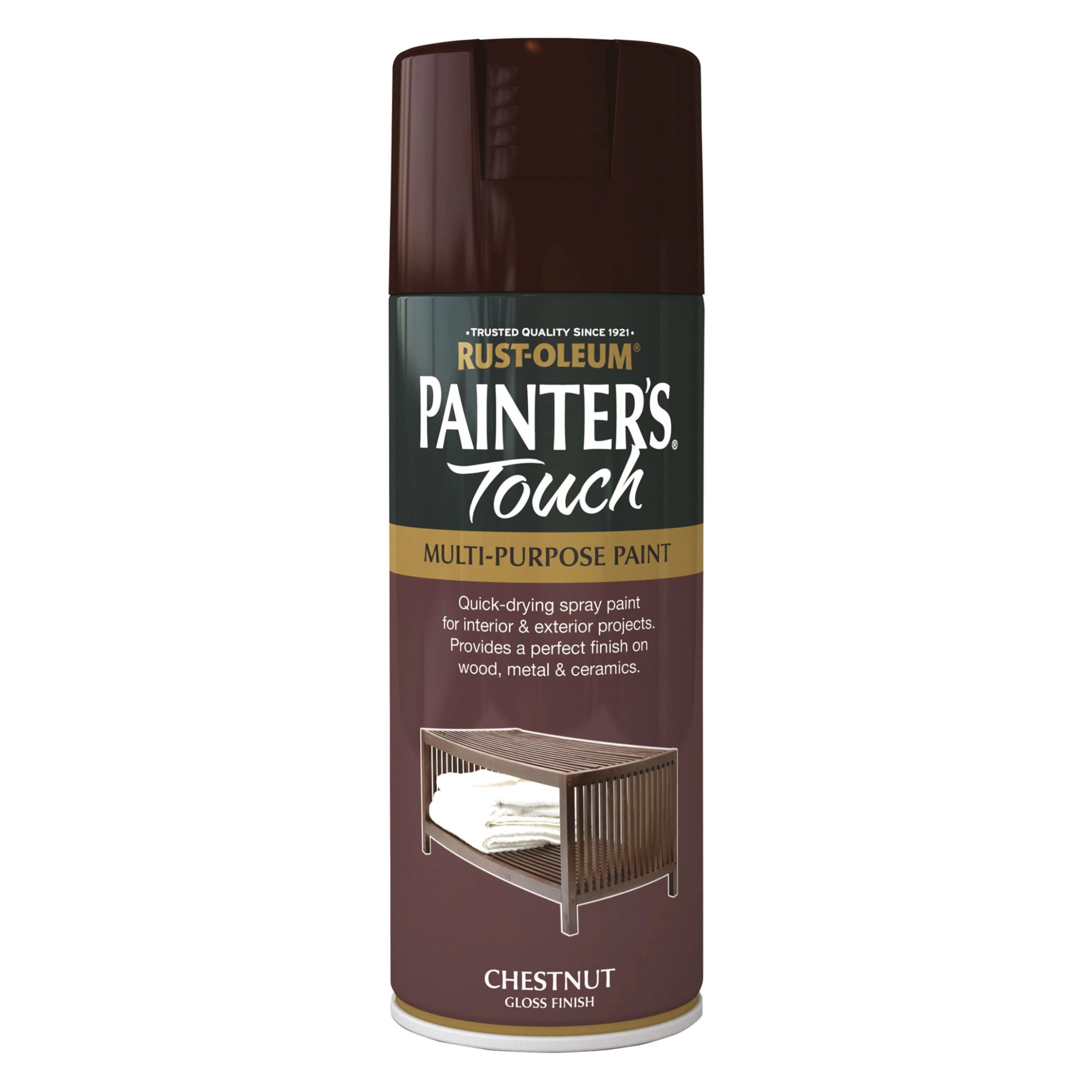 Ideal for multi surface, this Chestnut gloss gloss decorative spray paint from the Painter’s touch range by Rust-Oleum has been specially designed to give a stunning finish to around your home. Simply apply and leave for 24 hours to dry – a great way to revamp your home. Covers 2m² per litre on average.