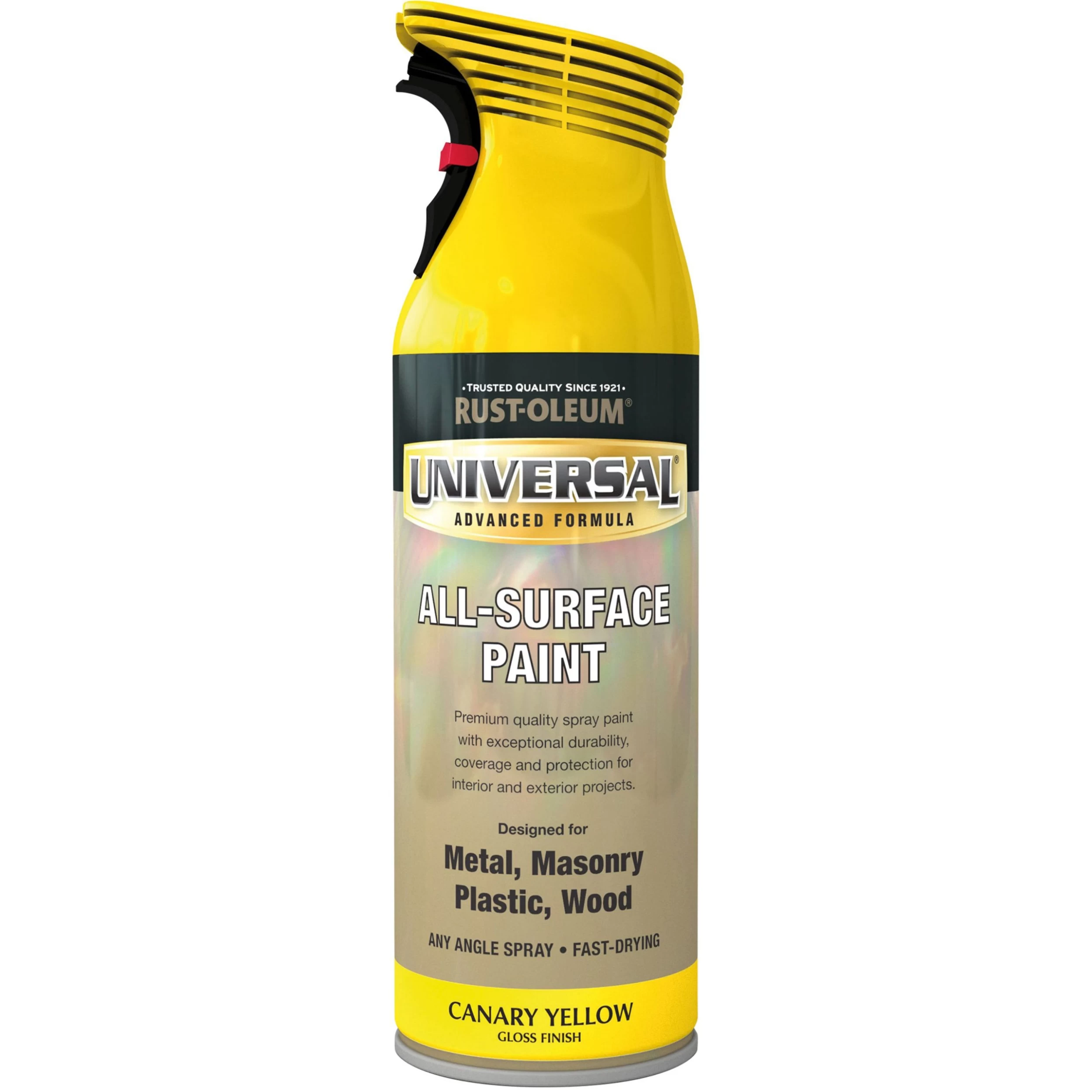 Ideal for multi surface, this Canary Yellow gloss gloss spray paint from the Universal range by Rust-Oleum has been specially designed to give a stunning finish to around your home. Simply apply and leave for 24 hours to dry – a great way to revamp your home. Covers 2m² per litre on average.