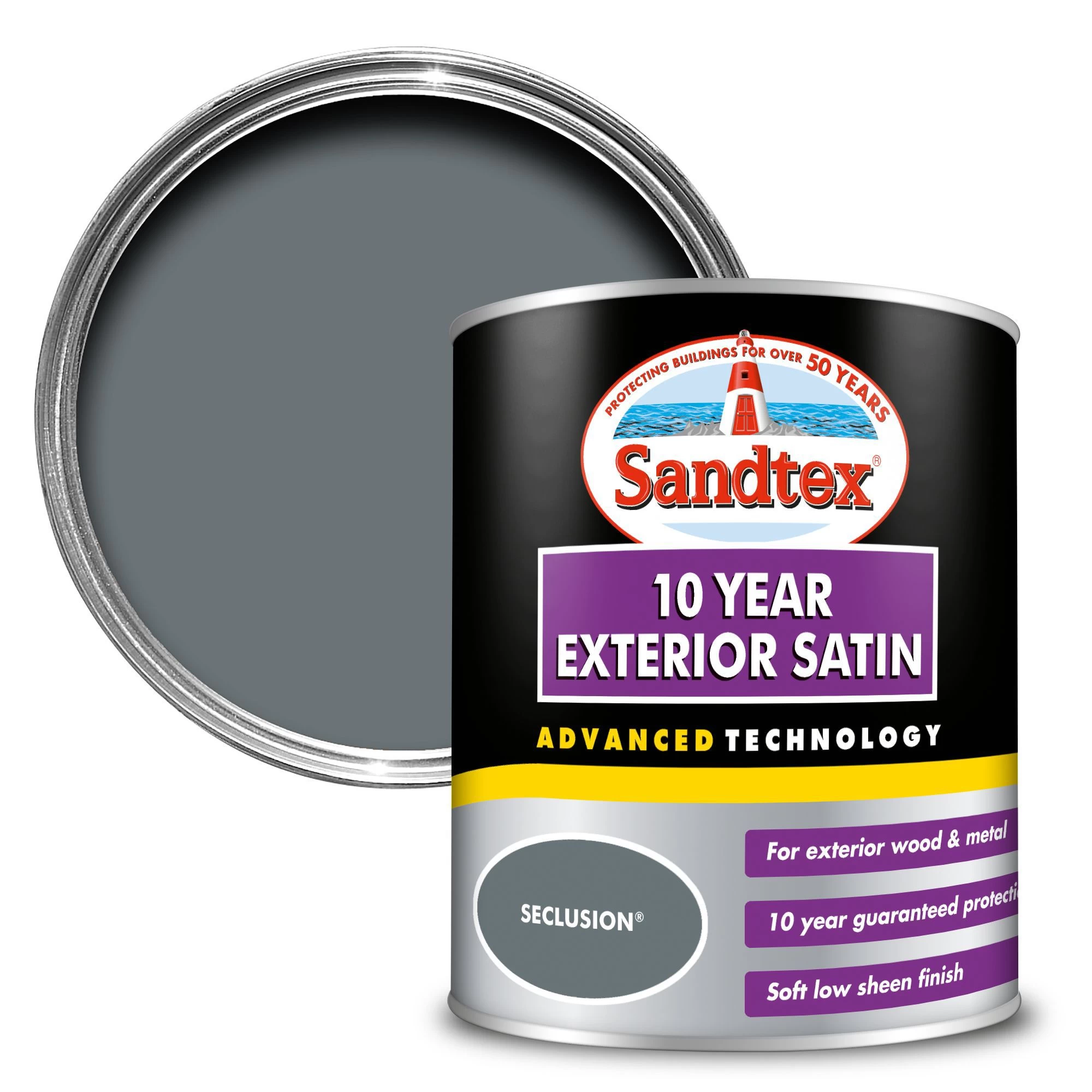 This satinwood metal and wood paint from the Sandtex 10 year range is the perfect choice to revive your home exterior. Made to provide a rich, durable finish, you can be sure that this paint will look brilliant for longer. Seclusion is a wonderful shade of grey that will add a contemporary feel to your scheme. It can be applied on any metal and wood surfaces to create a consistent finish. After application, this metal and wood paint will accomplish a flawlessly satinwood surface that will look good as new for a long time. This 2.5L size will cover up to 15 m² on average, so you can buy exactly what you need to complete your decorating job. For the best outcome, apply with a brush. You can recoat it in 16 hours. Resistant to cracking, it’s suitable for use in your outdoor space. As well as looking brilliant, this paint is safe for use in your home. It contains minimal VOCs, making it a safe choice for you and your environment.